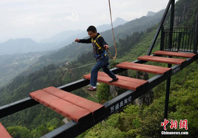 Những người yêu thích du lịch mạo hiểm thường không ngừng tìm kiếm những địa điểm mới lạ để thách thức bản thân. Vì thế, các khu du lịch phải luôn sáng tạo ra những thử thách mới để đáp ứng nhu cầu trải nghiệm của khách hàng. Một khu du lịch ở tỉnh Trùng Khánh, Trung Quốc vừa khai trương cây cầu nhân tạo được xem là nguy hiểm nhất Trung Quốc để phục vụ khách du lịch nhân dịp lễ Quốc tế Lao động 1/5 vừa qua.
