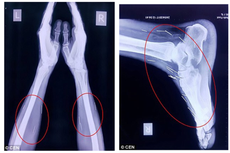 Vietbf.com - Sau khi đau chân đi khám đưa người đàn ông vào bệnh viện để phẫu thuật ngón chân cái, thì bác sĩ phát hiện trong chân ông có nhiều cây kim, khi tiếp tục kiểm tra, các bác sĩ phát hiện có tới 75 cây kim trong cơ thể, có 40 cây nằm trong cổ họng, 25 cây ở chân và 2 cây ở cánh tay, người thân của ông ta cảm thấy vô cùng sợ hãi.