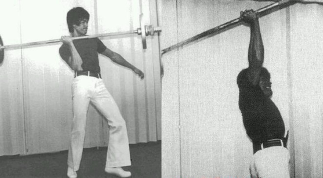 Trong những tấm ảnh này có thể thấy Lý Tiểu Long dùng một tay nhấc tạ nặng 34 kg. Sau đó, nam diễn viên còn tạo tư thế giơ tay thẳng trong 20 giây.