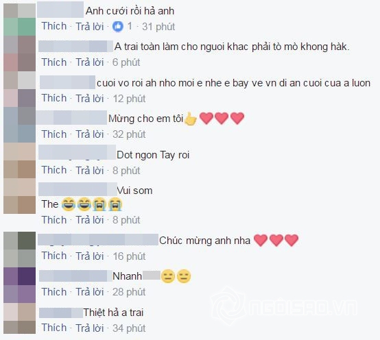 Cách đây ít phút, chồng cũ Phi Thanh Vân – Bảo Duy gây chú ý khi đăng tải hình ảnh đeo nhẫn cưới ở ngón áp út và úp mở ảnh cô dâu, kèm theo chia sẻ: “Con tim đã vui trở lại”. Nhiều người nghi ngờ Bảo Duy đã tìm được bến đỗ mới sau khi ly hôn với Phi Thanh Vân: “Mừng cho em tôi”, “Chúc mừng anh”, “Anh cưới rồi hả anh”… Tuy nhiên, Bảo Duy chưa chính thức phản hồi lại những bình luận này.