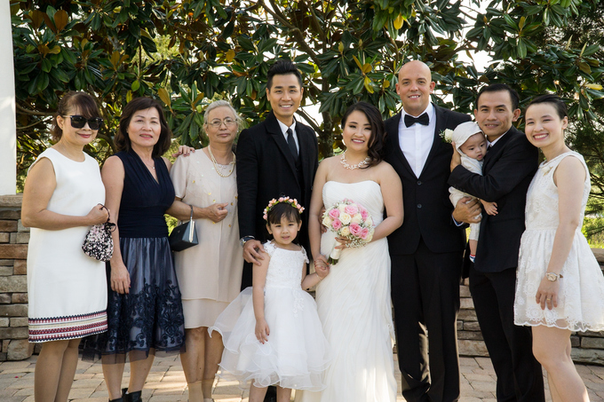 Gia đình Nguyên Khang chụp hình kỷ niệm trong đám cưới.