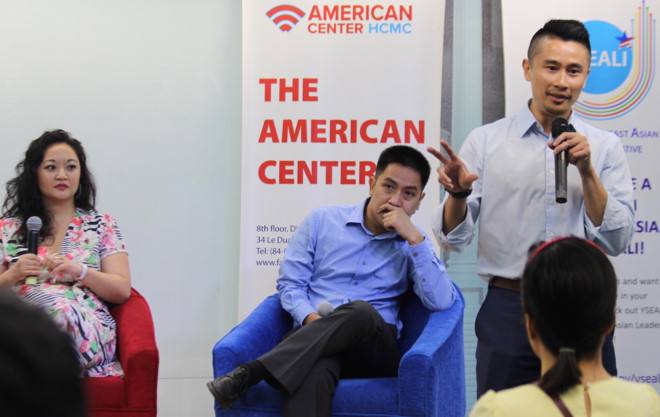 Các diễn giả Việt kiều chia sẻ về những ngày đầu khi mới trở về Việt Nam tìm hiểu cuộc sống và cơ hội lập nghiệp. Ảnh: CT.
