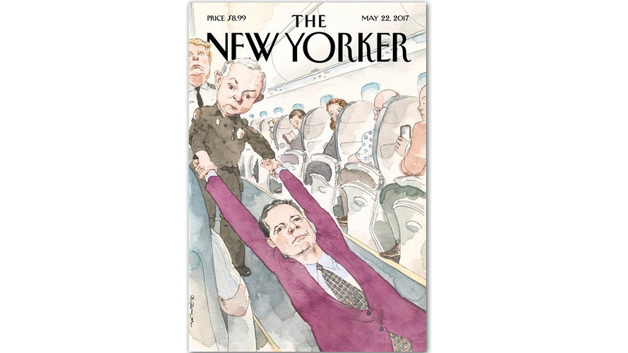 Chính trường Mỹ chấn động vì Tổng thống Donald Trump sa thải Giám đốc FBI. Vừa qua dư luận xã hội cũng bị choáng vì hành khách bị kéo xuống máy bay của United Airlines. Nhìn nhận lại hai vụ việc, bìa tờ New Yorker của Mỹ đã đăng ảnh Giám đốc FBI bị kéo khỏi máy bay đang được lan truyền trên mạng với tốc độ chóng mặt.