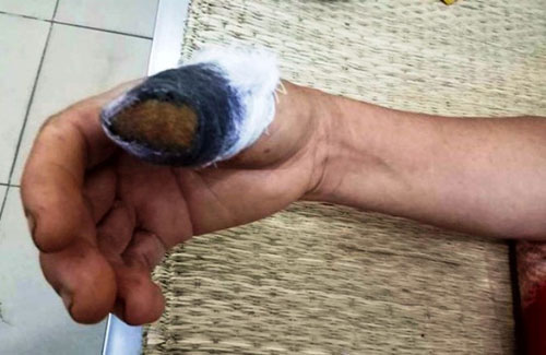 Vì vết thương nặng nên bà Công lại được chuyển xuống Bệnh viện Chấn thương chỉnh hình Nghệ An. Tại đây, các bác sĩ đã tháo khớp ngón tay cái này.