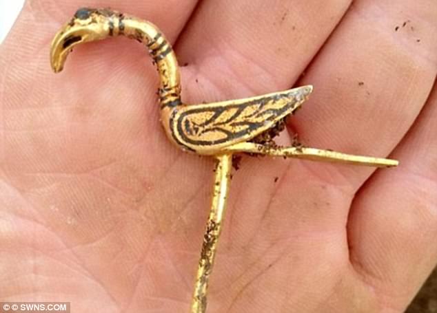 Ghim cài hình chim bằng vàng nằm trong kho báu mà McLennan phát hiện.