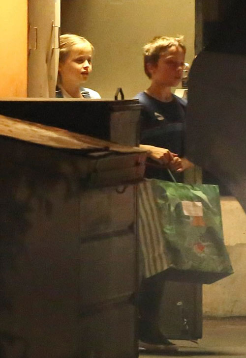 Angelina Jolie dẫn 4 nhóc tỳ đến nhà hàng ăn tối cùng bố đẻ cô, nam diễn viên Jon Voight, hôm 10/5. Hai bé Maddox và Shiloh đã không đi cùng trong buổi này.