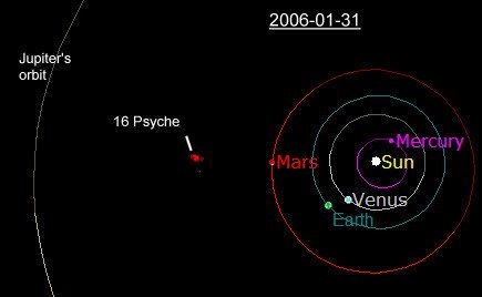 Vị trí của 16 Psyche trong Hệ Mặt trời. Nguồn: Astrology Weekly.