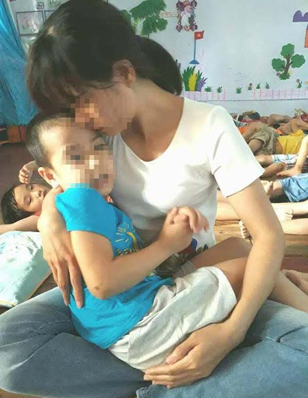 Sau mỗi giờ dạy chị Vân Anh lại tranh thủ về trường mầm non để thăm con.