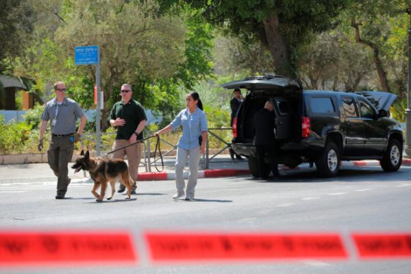 Chó nghiệp vụ làm nhiệm vụ tại khu vực xung quanh khách sạn King David ở Jerusalem. Ảnh: Reuters.