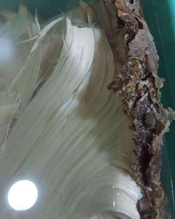 Điều lạ là tuy có vẻ ngoài xù xì nhưng phần thịt bên trong “gốc cây” lại mềm, trông như các thớ thịt trắng hoặc đậu hũ. Thông tin anh tìm thấy gốc cây lạ đã nhánh chóng lan khắp làng. Có người nói rằng, đây rất có thể là nấm Thái Tuế huyền thoại còn được gọi là nấm thịt linh chi – loại nấm được xếp vào hàng siêu phẩm, dùng cho vua chúa thời xưa.