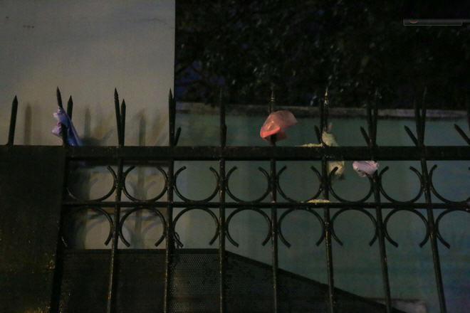 Tối ngày 25/5, trao đổi với chúng tôi, bảo vệ trường THPT Nguyễn Khuyến xác nhận sáng cùng ngày có việc các em học sinh ném bột "bom" sơn vào trường.