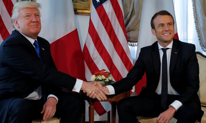 Trước hội nghị thượng đỉnh NATO ở Brussels, Bỉ, Tổng thống Mỹ Donald Trump và tân Tổng thống Pháp Macronđã gặp nhau và đã có một "cái bắt tay tím tái" được báo chí quốc tế hết sức chú ý.