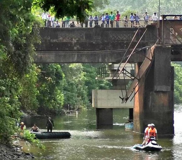 Các nhân viên cứu hộ đang tìm kiếm thi thể các nạn nhân bị rơi xuống sống khi cây cầu đổ sập do có quá nhiều người tập trung