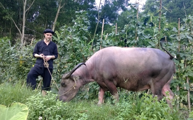 Du khách Pháp trải nghiệm chăn trâu. Ảnh: VNE