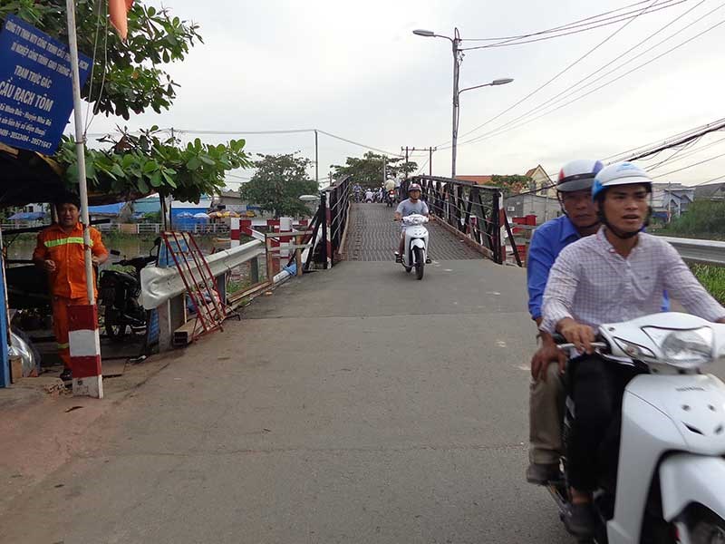 Cầu dân sinh bắc qua rạch Tôm cũng có nguy cơ sập đổ. Ảnh: L.ĐỨC