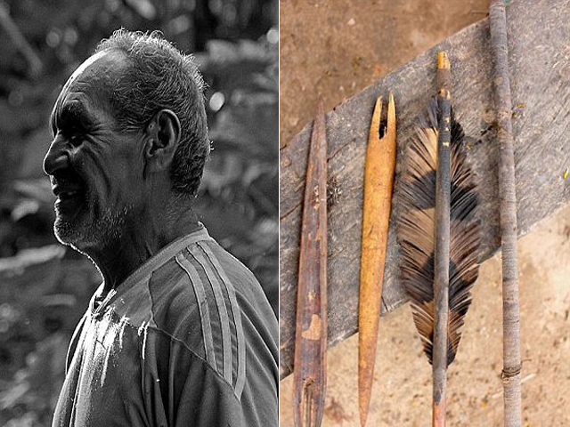 Shaco Flores (ảnh trái) bị tộc người Mashco Piro giết năm 2011 bằng vũ khí bao gồm cung tên và mũi giáo (ảnh phải. (Ảnh Dailymail)