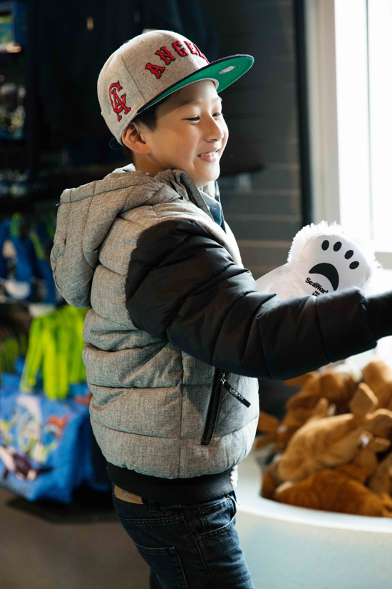 Jennifer Phạm và con trai cùng đi giày đôi khi đến vui chơi ở công viên Seaworld.