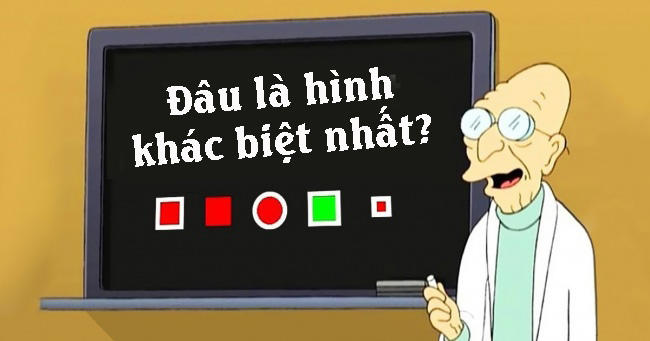 Vì sao? Vì hình đó chẳng có gì đặc biệt cả. Nó không phải hình vuông duy nhất, không phải hình nhỏ nhất, không có màu xanh, và có viền bao quanh. Nói cách khác, nó trở nên đặc biệt nhất vì không có điểm gì khác biệt so với các hình còn lại.