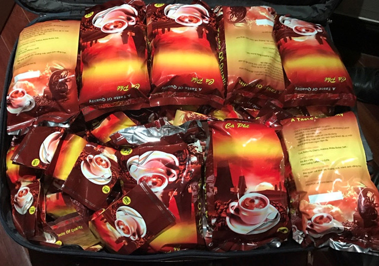 Sau khi thành phẩm, “hàng” được đóng trong gói cà phê.