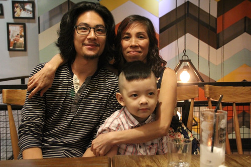 Quí chụp ảnh cùng mẹ và em trai (con trai của bà Đào với chồng hiện tại)