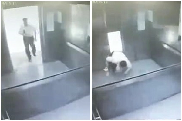 Khi người đàn ông xấu số đang chuẩn bị bước vào thì chiếc thang máy lại bất ngờ di chuyển lên tầng trên khiến ông này vấp chân và ngã sấp xuống sàn. Do chưa kịp phản ứng nên một phần cơ thể của nạn nhân lập tức bị "nuốt chửng" vào khoảng trống nằm ngay giữa khe cửa.