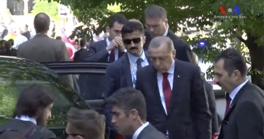 Vụ bạo lực diễn ra giữa những người biểu tình và nhân viên an ninh của Tổng thống Erdogan bên ngoài Đại sứ quán Thổ Nhĩ Kỳ trong chuyến thăm của ông tại Mỹ hồi tháng 5. Cảnh sát đã bắt giữ hai người Thổ Nhĩ Kỳ sống ở Mỹ.