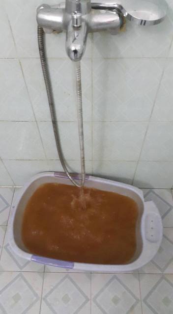 Nước máy nơi đây cứ vài ba tuần lại rơi vào tình trạng đỏ ngầu, bốc mùi tanh khó chịu… Thường ngày, nếu muốn có nước để phục vụ cho ăn uống, sinh hoạt thì người dân phải đi mua nước bình hoặc phải lắp thêm hệ thống lọc.