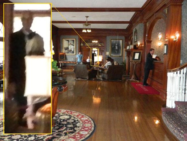 Bức ảnh này được chụp vào đúng thời điểm một hướng dẫn viên của tour thăm quan khách sạn Stanley chạm trán hồn ma ngay trong Phòng 418. Cô ấy đang giới thiệu về những linh hồn được cho là cư ngụ trong căn phòng, rồi đột ngột rùng mình run rấy, “Ngay bây giờ, một trong số họ đang ôm choàng lấy chân tôi."