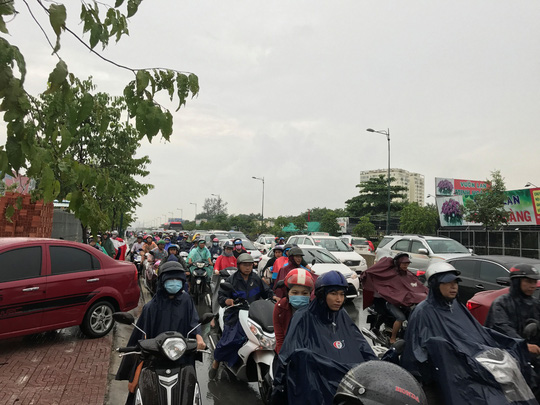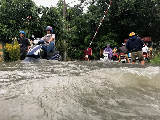 Khoảng 16 giờ 30 phút, tại đường ngang xe lửa cắt qua đường Tô Ngọc Vân (phường Linh Đông, quận Thủ Đức), giao thông gần như "tê liệt" khi nước dâng cao gần 1 m và rút chậm