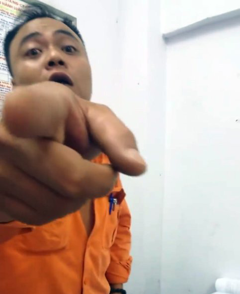 Nam công nhân đe dọa khách hàng - Ảnh cắt từ clip