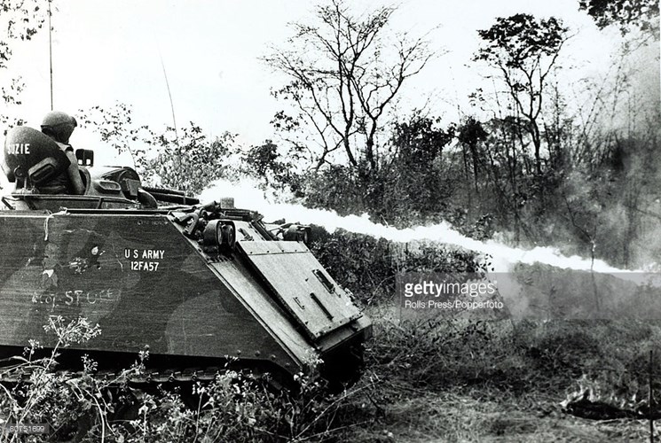 Giống với bom napalm, súng phun lửa cũng là một thứ vũ khí được Mỹ sử dụng rộng rãi trong chiến tranh Việt Nam. Thứ vũ khí này cũng đã bị cấm cùng với bom napalm sau khi chiến tranh Việt Nam kết thúc. Nguồn ảnh: Armchair.