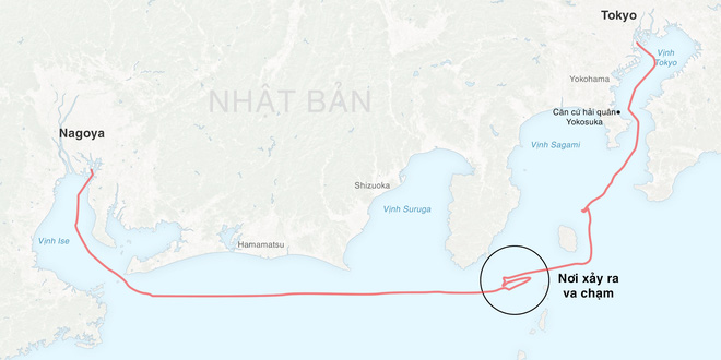 Lộ trình của USS Fitzgerald không được ghi nhận bởi hệ thống định vị thương mại không có dữ liệu của tàu chiến. Tuy nhiên, hải quân Mỹ cho hay, vụ va chạm diễn ra vào khoảng 2h20 sáng 17/8.