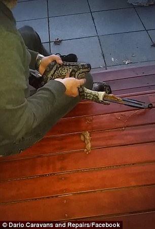 Con trăn khi được giải cứu không bò đi đâu mà nằm tại chỗ. Có lẽ do quá mệt mà nó không còn sức để bò. Một thanh niên nói: “Tôi phải mát xa cho con trăn trong một tiếng liên tục. Nó vẫn ổn nhưng hơi tức giận vì ăn phải thanh sắt”.