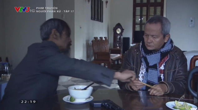 Phan Sơn: "Mày đừng có làm nhục tao! Tao xử mày đấy!" – vừa nói vừa lườm nguýt. Thế Chột: "Sao? Mày có khả năng ấy cơ à? Ôi, tao sợ quá! Hứ!" – vừa nói giựt lấy bát mì.
