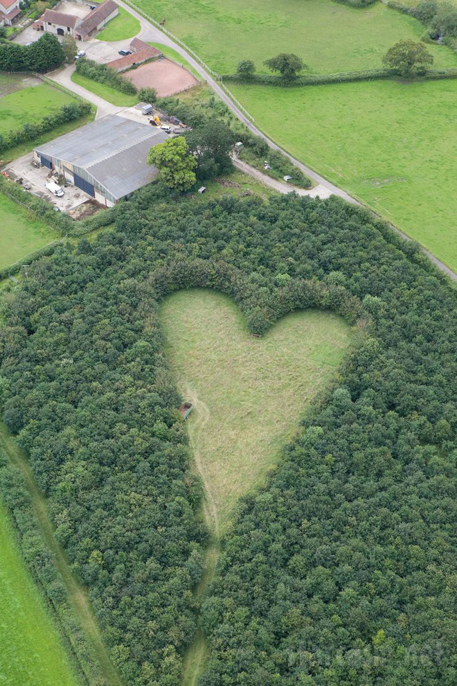 Trong một lần dạo chơi trên chiếc khinh khí cầu vào năm 2012 và tiến tới gần khu rừng ở miền Tây Nam nước Anh, anh Andy Collet (đến từ thị trấn Wotton-Under-Edge) đã vô cùng ngạc nhiên khi nhìn xuống phía dưới: Một bãi cỏ hình trái tim đang hiện ra trước mắt.