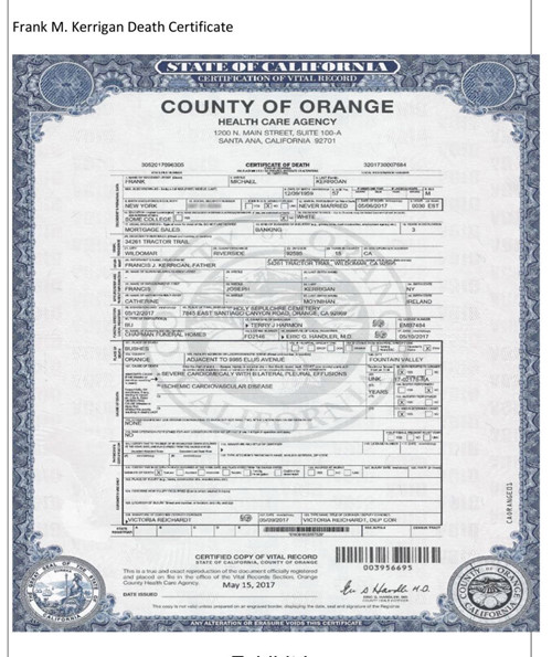 Giấy chứng tử Văn phòng điều tra các cái chết bất thường ở Quận Cam