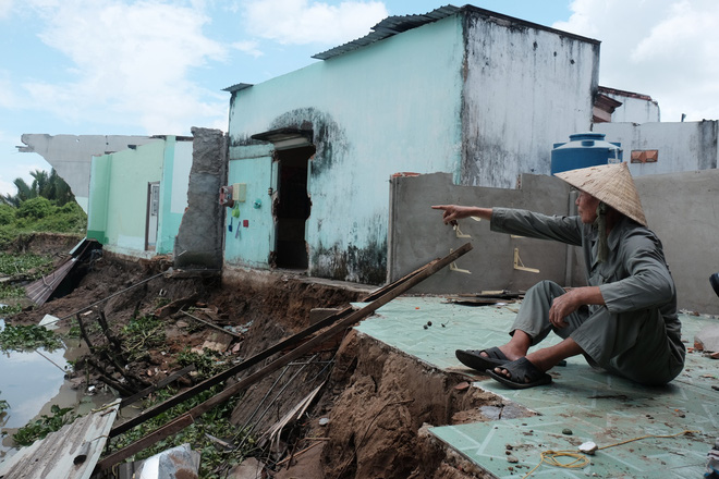 Trao đổi với báo chí, ông Văn Tấn Tài (80 tuổi) kể lại, vào khoảng 12 giờ khuya hôm 27/6, ông Tài đang thiu thiu ngủ thì nghe những tiếng rầm rầm rất lớn. Ông vội chạy lại mé xông thì thấy nhà mình cũng những nhà bên cạnh bị trôi tuột xuống sông, mái tôn và tường cũng sập xuống. Cả cây dừa nằm sát bờ cũng bị tróc gốc trôi ra đến tận ngoài xa.