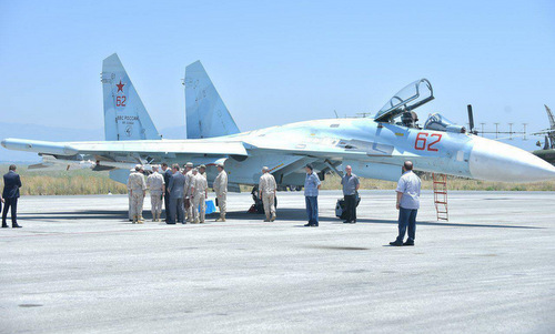 Một tiêm kích Su-27SM3 mang số hiệu 62 xuất hiện trong chuyến thăm của Tổng thống Syria Bashar al-Assad tới căn cứ không quân Hmeymim hôm 27/6. Đây là loại máy bay chưa từng được triển khai trong đội hình không quân Nga tại Syria, Livejournal đưa tin.