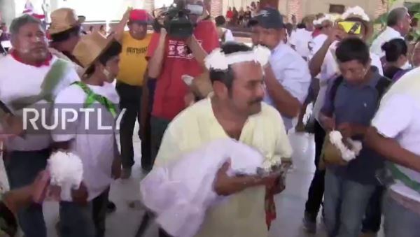 Thị trưởng thành phố San Pedro Huamelula trong nghi lễ cưới vợ cá sấu. (Ảnh: RT)