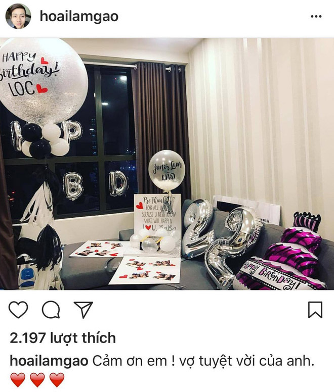 Đặc biệt, nam ca sĩ không chỉ gửi lời cảm ơn đến người đẹp, mà còn công khai gọi cô là “vợ” trước mặt fan: “Cảm ơn em! Vợ tuyệt vời của anh”, kèm theo đó là khung cảnh lãng mạn với bóng bay và nhiều món quà đặc biệt do chính “bà xã tương lai” của anh chuẩn bị.