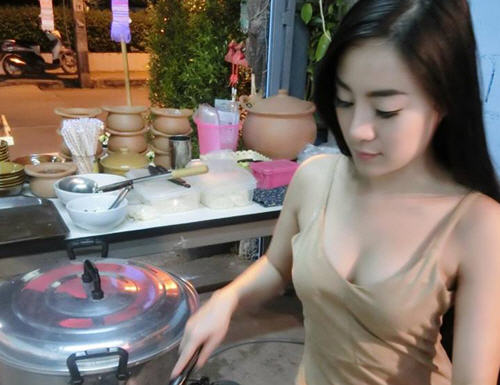 Vietbf.com - Nhiều khách mày râu nườm nượp kéo đến quán ăn nổi tiếng nhờ cô chủ xinh đẹp lại có thân hình quá nóng bỏng, vì vậy cô chủ cũng trở thành người mẫu gợi cảm cho tạp chí nam giới, khiến thu hút được không ít khách tới ăn và chỉ trong thời gian ngắn quán ăn của cô trở nên rất nổi tiếng.