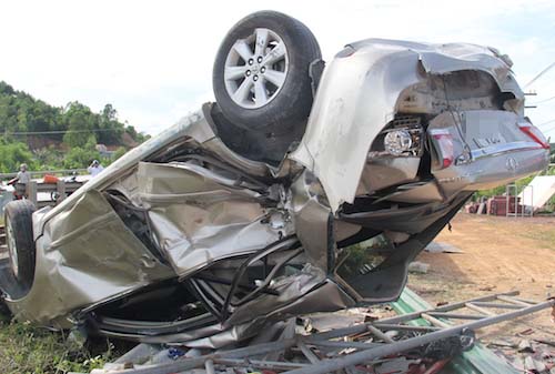 Cú đâm mạnh khiến ôtô 4 chỗ lật nhiều vòng, bị hất văng khỏi hiện trường hơn 20 m. Tai nạn khiến anh Nguyễn Thế Lương (43 tuổi) và anh Lê Kỳ Hùng (59 tuổi) tử vong ngay trong xe. 2 người còn lại trên xe bị chấn thương nặng.