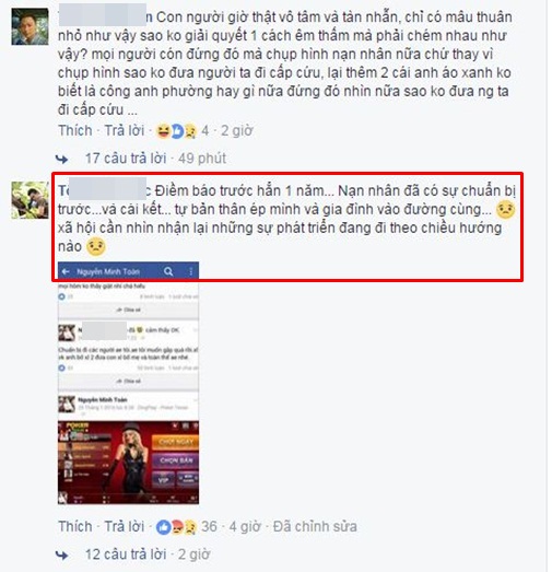 “Vụ án đang hot ở Vĩnh Phúc nạn nhân do nợ nần bị chém tử vong, và trên Facebook cá nhân của nạn nhân để cái ảnh bìa cũng chỉ tầm từ cổ trở xuống, cái này phải xem bằng laptop mới rõ, thấy có kinh không?