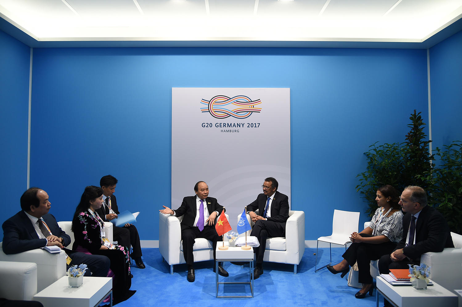 Tại cuộc gặp Tổng Giám đốc Tổ chức Y tế thế giới (WHO), Thủ tướng Nguyễn Xuân Phúc chúc mừng ông Tedros Adhanom Ghebreyesus được bầu làm Tổng Giám đốc WHO với số phiếu cao; nhấn mạnh những thành tựu của Việt Nam về y tế và mong muốn thúc đẩy hơn nữa hợp tác giữa Việt Nam và WHO để phục vụ tốt hơn mục tiêu chăm sóc sức khỏe người dân và đạt các mục tiêu phát triển bền vững (SDGs).