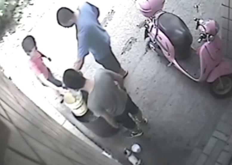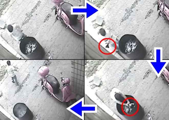 Camera an ninh ghi lại hình ảnh bé trai ném chú chó vào thùng hóa vàng.