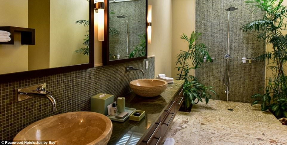 Phòng tắm của khu nhà chính có thiết kế độc đáo, hòa hợp với thiên nhiên.