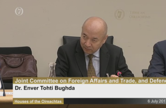 Bác sỹ Enver Tohti làm chứng tại Nghị viện Ai Len về hoạt động mổ cướp nội tạng của chính quyền Trung Quốc, ngày 6/7/2017 (Ảnh chụp màn hình từ Oireachtas.ie)