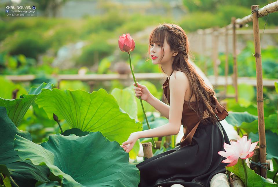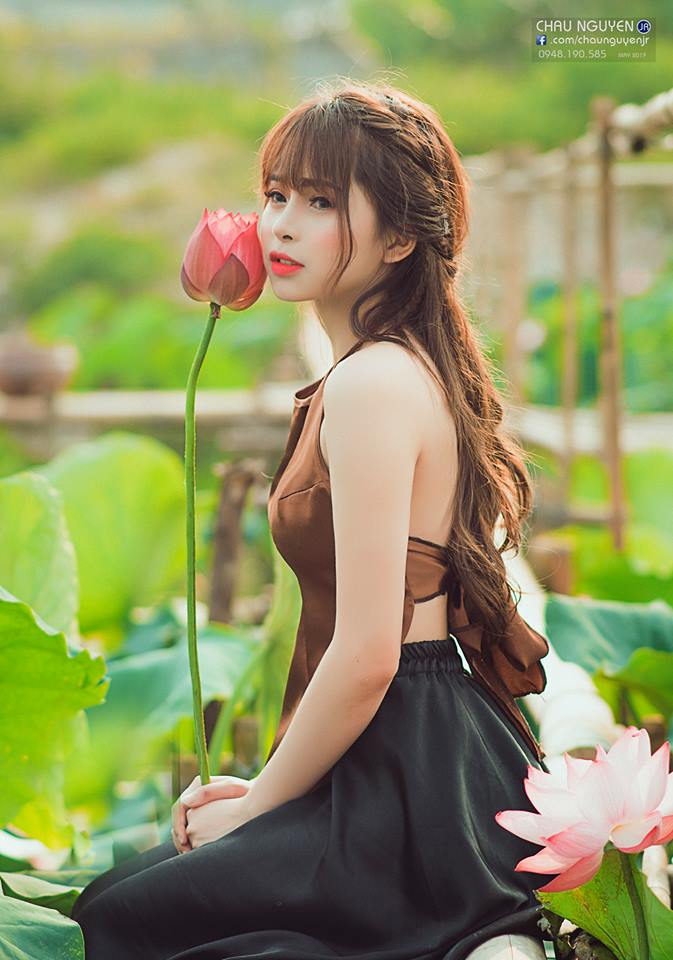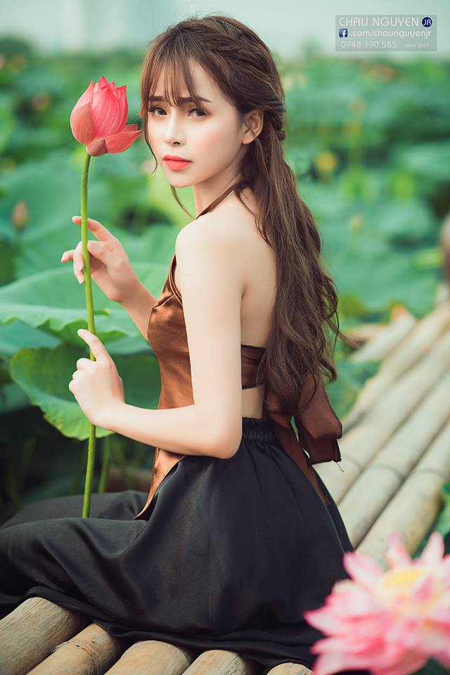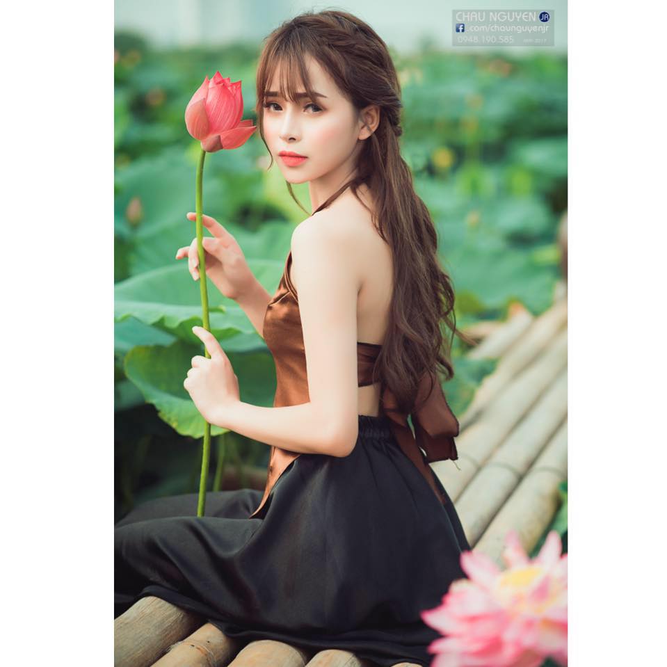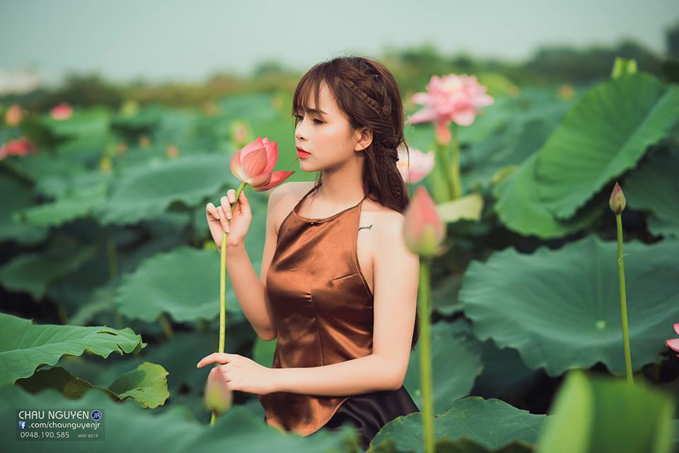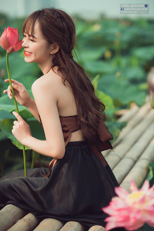 Mặc áo yếm chụp ảnh bên sen đốn tim các chàng trai cần gì phải hở hang