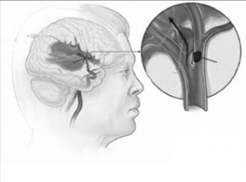 Cục máu đông làm nghẽn lòng động mạch gây nhồi máu não.