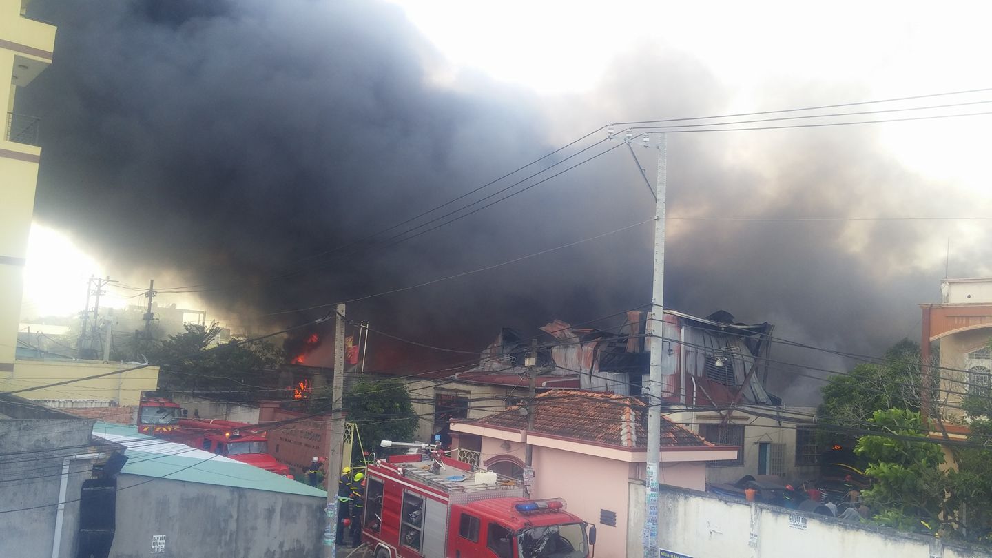 Lửa lan nhanh kèm theo cột khói đen khổng lồ